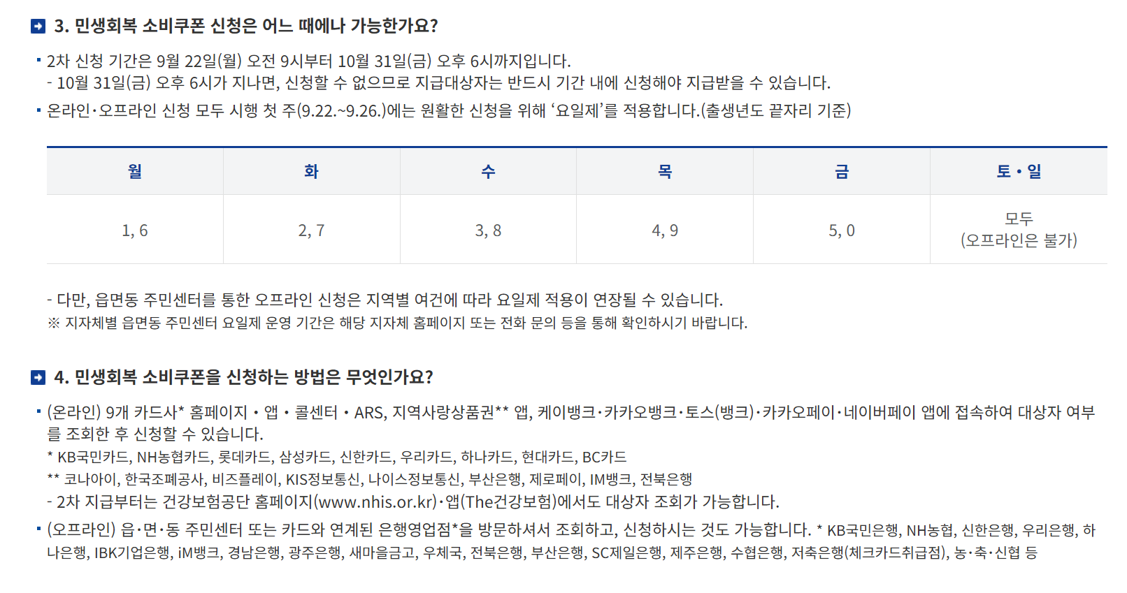 민생회복지원쿠폰 2차 신청 기간과 지급일정
