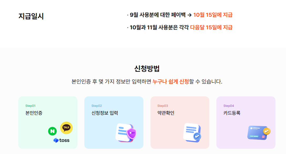 신청 방법은 매우 간단합니다. 상생페이백 공식 누리집에 접속하여 본인 인증을 진행한 후, 사용하는 카드사를 선택하고 약관에 동의하면 신청이 완료됩니다.