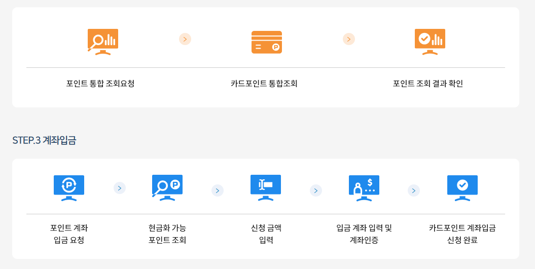 카드포인트 통합조회 이용 절차와 계좌입금 상세 과정