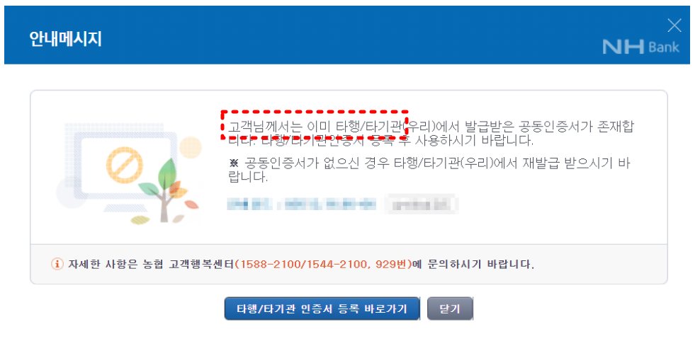 아래와 같이 타행 공인인증서가 이미 발급되어 사용중인 PC에 저장이 되어 있는 경우입니다. 아래와 같은 화면이 나오게 됩니다