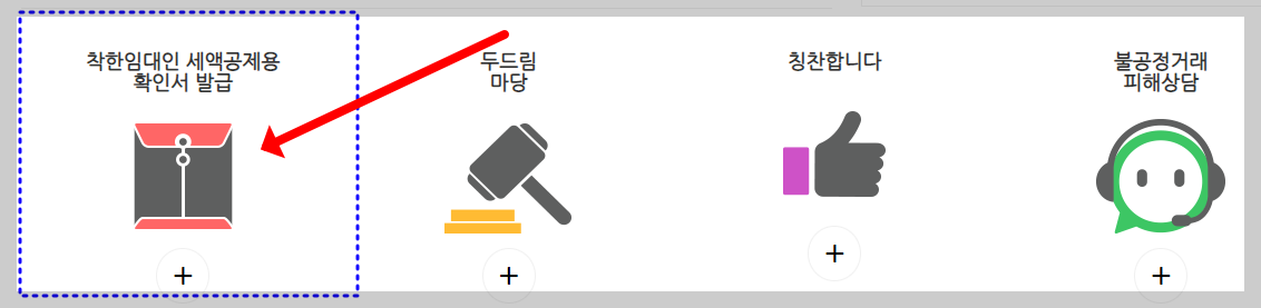홈페이지에 로그인을 한 뒤에 아래로 내리면 맨 밑에 "착한임대인 세액공제용 확인서 발급"이라는 메뉴가 보입니다. 세액공제용 확인서로만 활용 가능하고 만약에 다른 용도로 받으시는 분들은 "중소기업현황정보시스템"에서 신청을 하셔야 합니다.