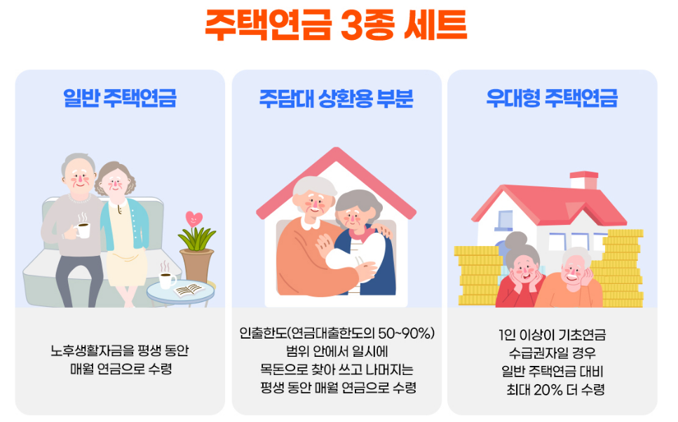 👉주택연금 종류는 크게 3가지입니다.