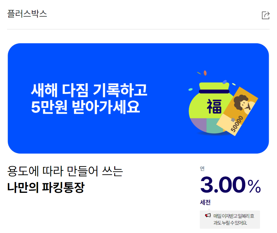 케이뱅크는 파킹통장 상품인 '플러스박스'를 출시한 이후 현재 금리를 연 2.7%에서 연 3.0%로 상향했습니다.