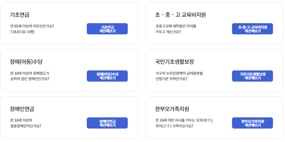 차상위계층 자격조건 계산이 어렵기 때문에 온라인 사이트를 통해 자격요건을 간단하게 조회할 수 있는 서비스가 있습니다.