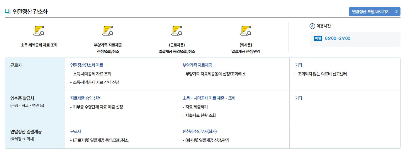 ▶ 연말정산 미리보기 서비스의 주요 기능