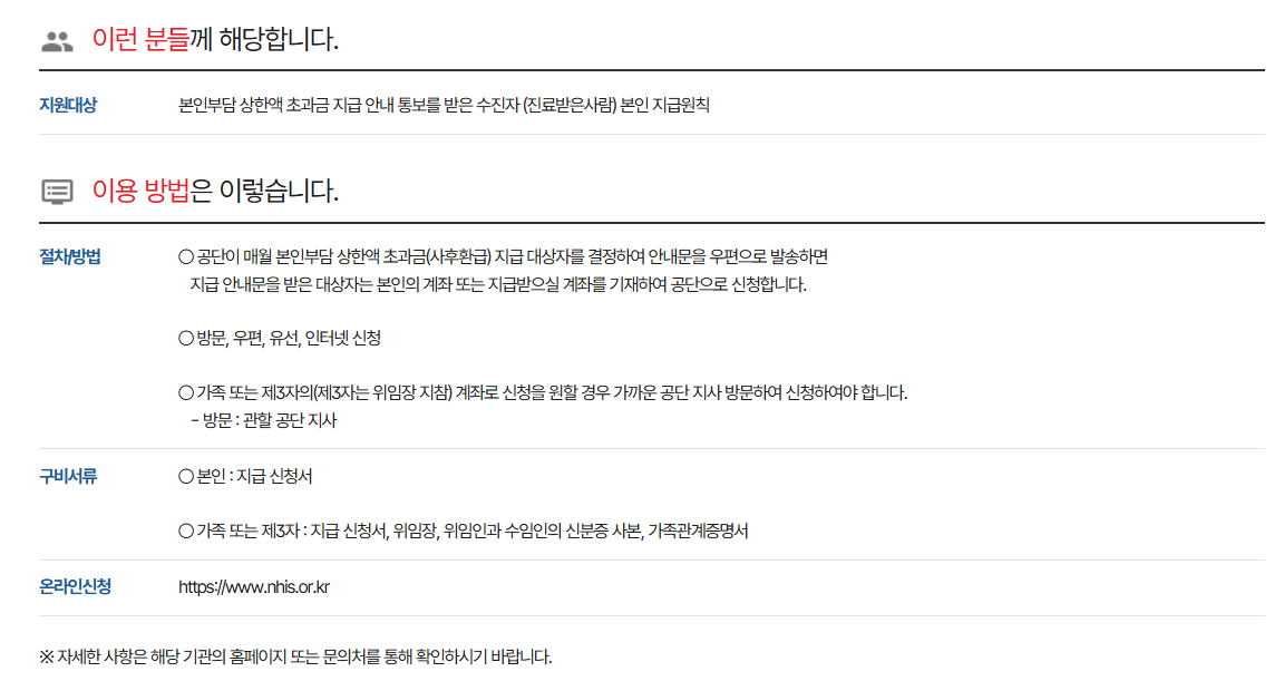 본인부담 상한제는 국민건강보엄 가입자 및 피부양자 모두에게 적용됩니다. 단, 일부 경우는 제외됩니다