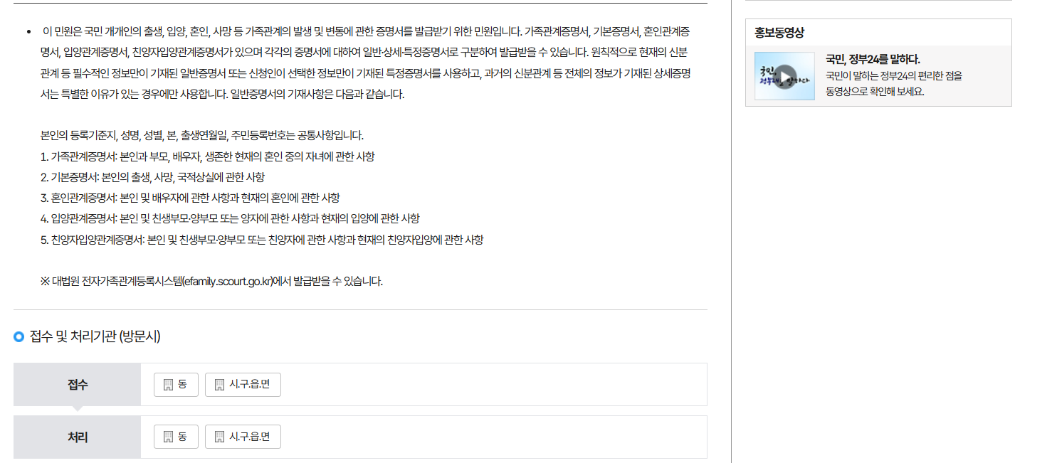 민원24시 가족관계증명서 발급