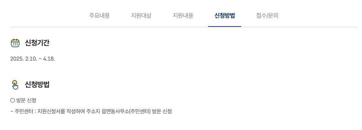 방문 신청 (읍·면·동 행정복지센터) : 2025년 2월 24일 ~ 3월 14일