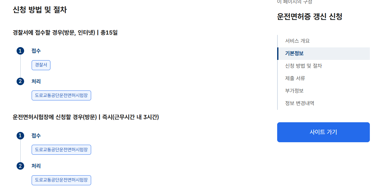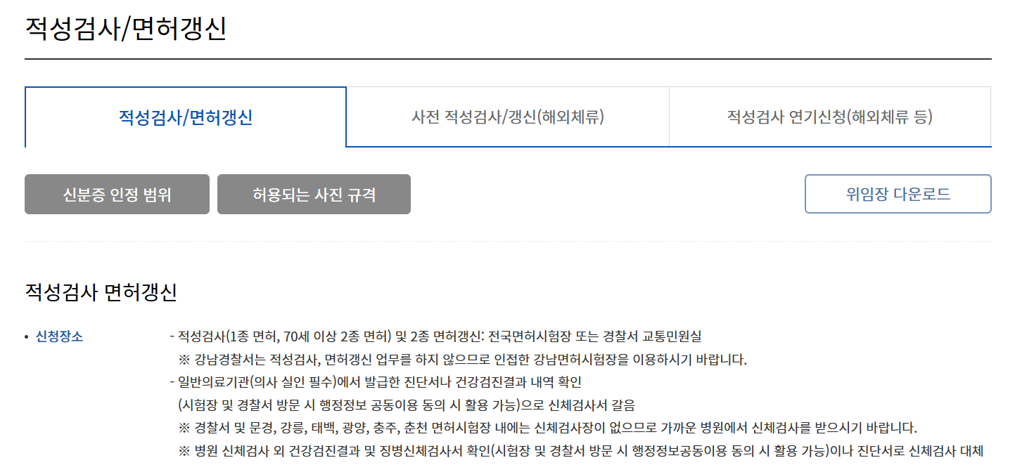 - 로그인 후 '면허증 갱신 신청' 메뉴 선택