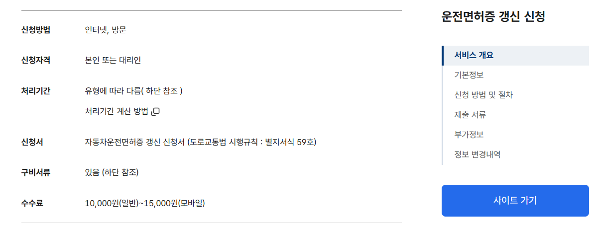 - 갱신 수수료 (약 12,500원, 지역마다 차이 있음)