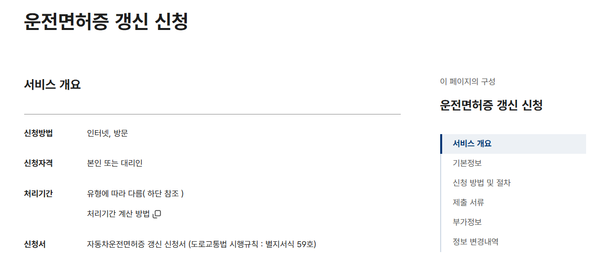 - 면허증 분실 시 재발급과 함께 갱신 신청 가능