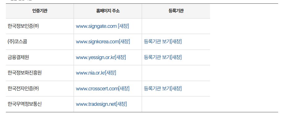 이용 가능한 인증기관