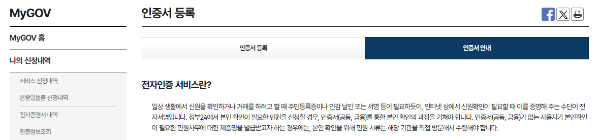 - 정부24, 홈택스, 위택스 등 공공기관 사이트 이용 시
