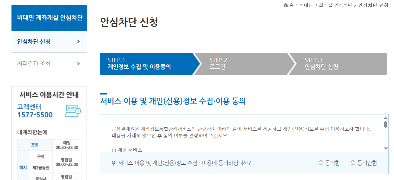 비대면 계좌개설 안심차단 서비스 신청 방법