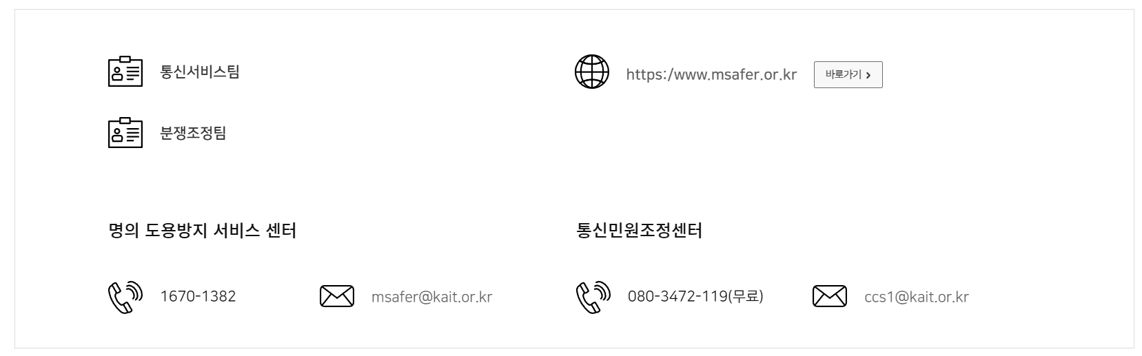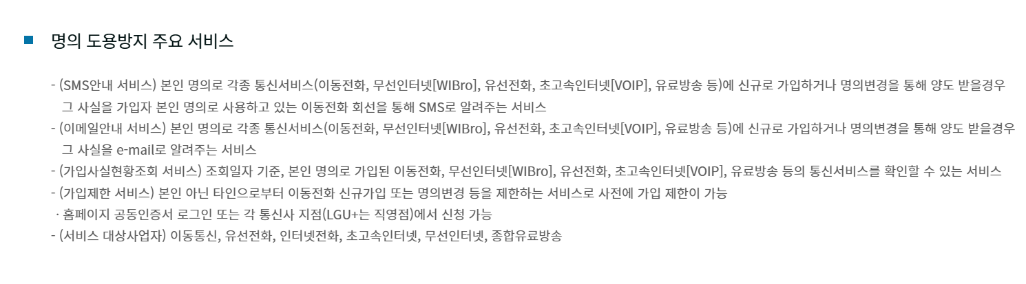 - 명의도용 의심 시 즉각적인 서비스 차단 요청 가능
