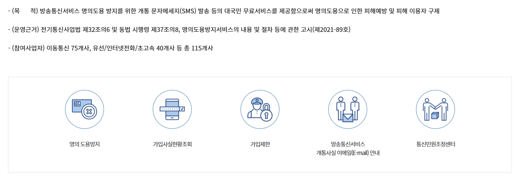 - 본인 명의로 새로운 통신 서비스 개설 시 사전 인증 요구