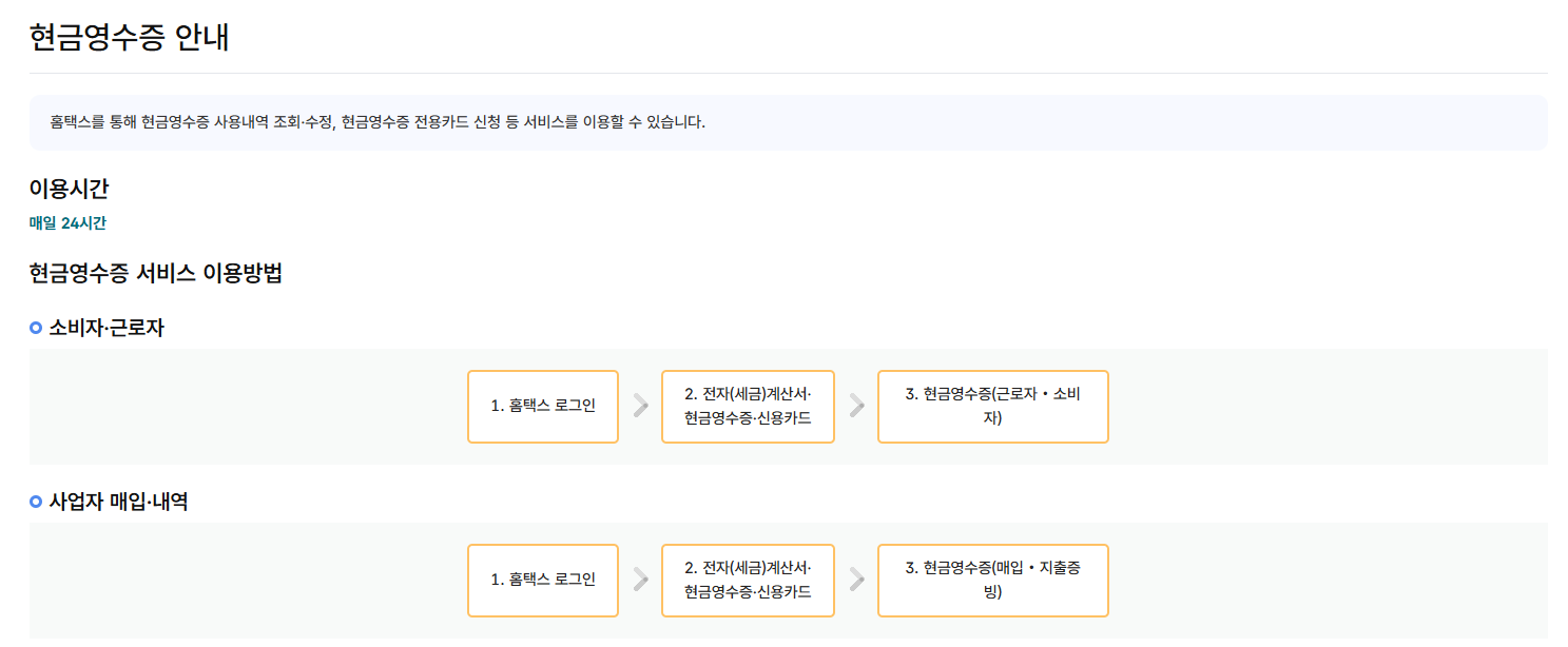홈택스에서 현금영수증을 조회하고 발급받는 전체 절차입니다.