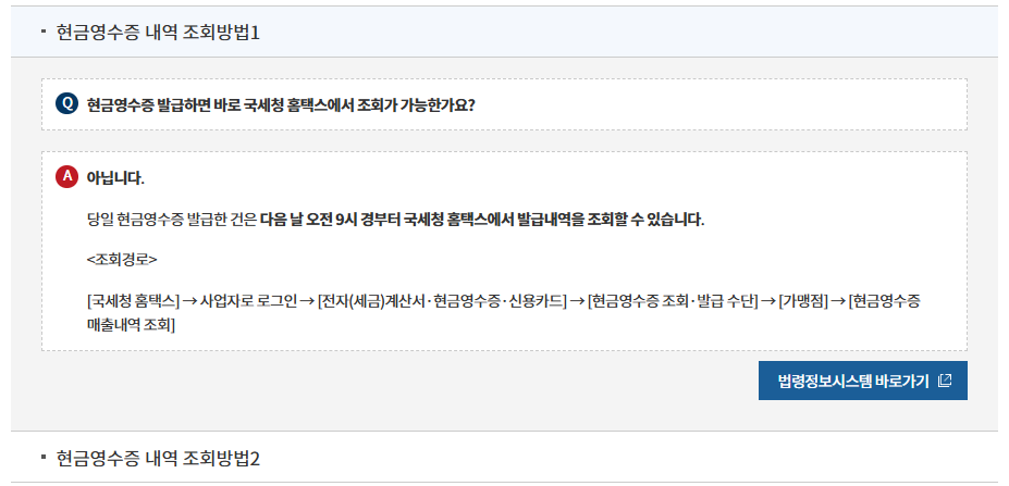 홈택스 현금영수증 조회 바로가기