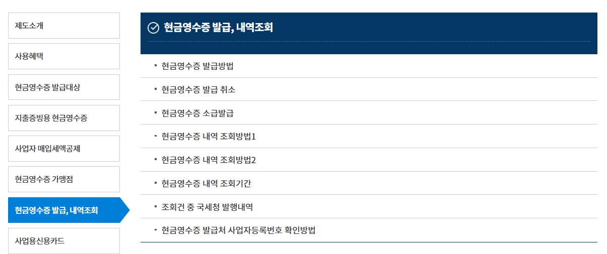 2. 현금영수증 메뉴 진입