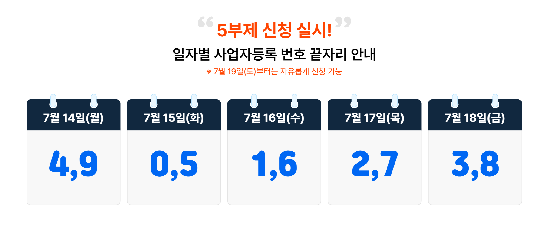 신청 첫 주는 원활한 접수를 위해 사업자등록번호 끝자리 기준으로 5부제가 운영됩니다.